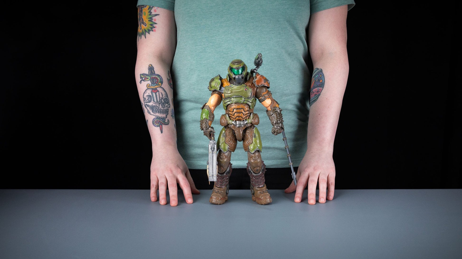 | "Gegen alles Böse, das die Hölle heraufbeschwören kann, gegen alles Schlechte, das die Menschheit hervorbringen kann, werden wir nur dich schicken... Reißt und zerreißt, bis es vollbracht ist." Diese 30 cm große ultimative Version des legendären Dämonenjägers enthält den Schmelztiegel für alle deine sofortigen Glory Kill Bedürfnisse. Präsentiere den wortkargen Racheengel der Menschheit mit erstaunlichen 17 austauschbaren Zubehörteilen. Lassen Sie eine Reihe von Munition, von der zuverlässigen DOOM-Klinge bis zum BFG 9000, das nur einen einzigen Treffer benötigt, sprechen, während Sie die Vernichtung der enthaltenen verlorenen Seele darstellen. Enthält: - Doom Slayer Actionfigur im Maßstab 1/6 (klassischer Prätor-Anzug) - Raketenwerfer/Schulterkanone - Schicksalsklinge - BFG 9000 Kettensäge - Schmelztiegel-Schwert - Schweres Gewehr - Plasmakanone - Super-Schrotflinte mit Fleischerhaken - Verlorene Seele (mit Acrylständer) - 4 x austauschbare rechte Hände - 4 x austauschbare linke Hände |